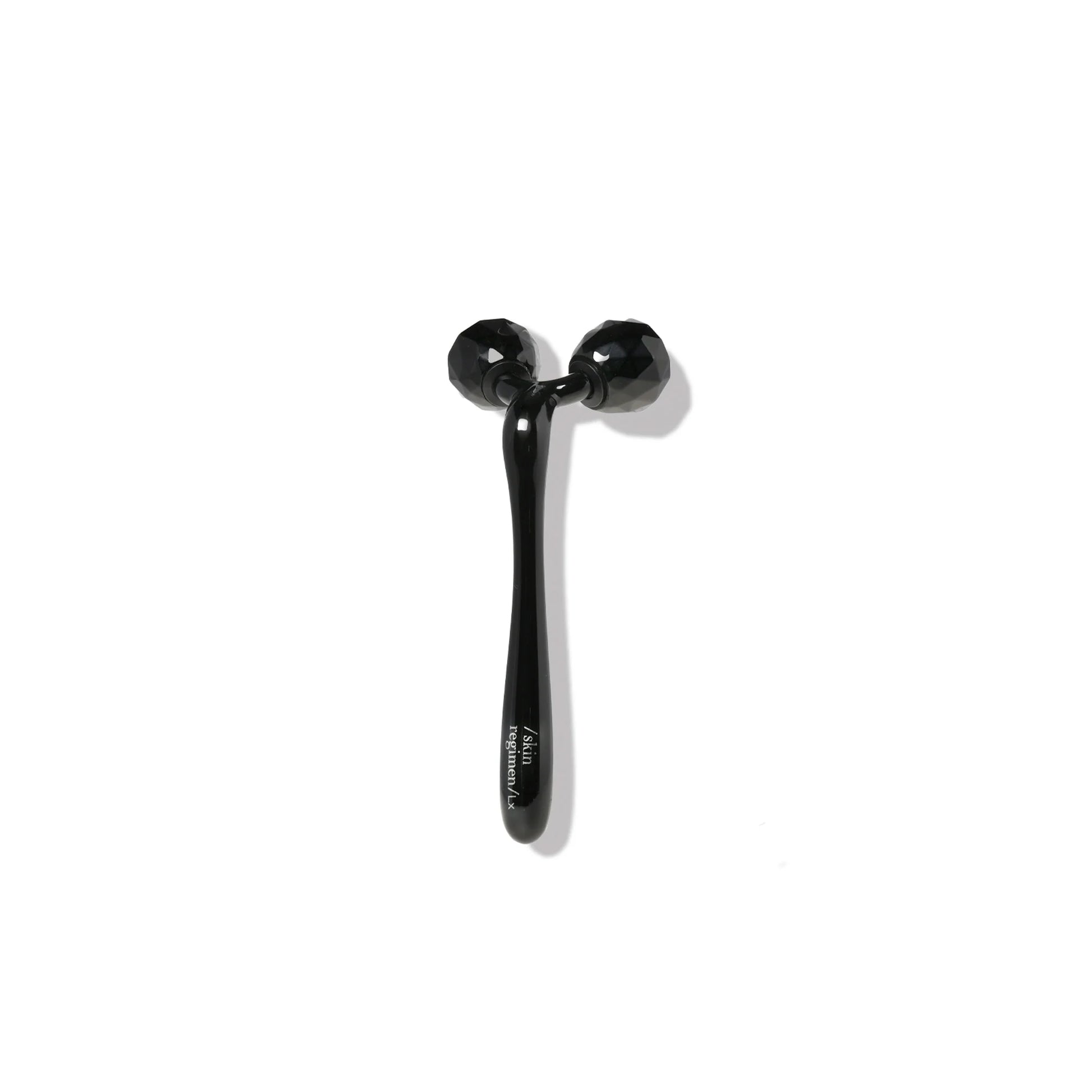 Der Roller ist ein V-förmiges Massage-Tool mit zwei diamantgeschliffenen Kugeln aus schwarzem Jade-Stein (Black Jade). Das V-förmige Design ermöglicht es, sich den Konturen des Gesichts perfekt anzupassen, insbesondere entlang der Kieferlinie und der Wangenknochen.