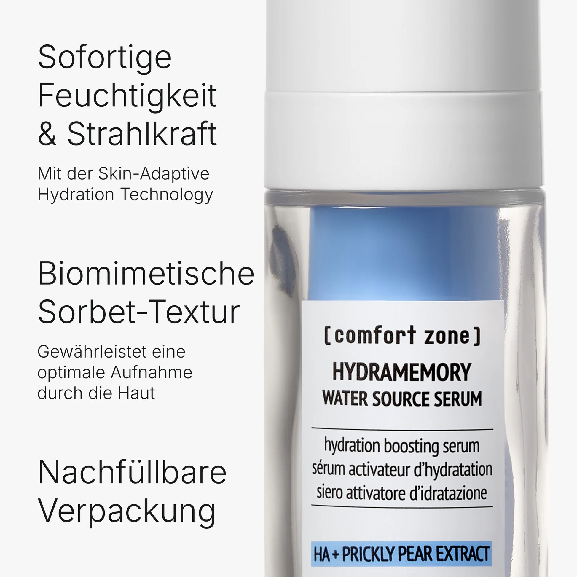 Das Herzstück der Hydramemory-Linie ist der Kaktusfeigenextrakt aus Apulien, eine Pflanze, die selbst unter extremen Bedingungen Feuchtigkeit speichern kann. Diese natürliche Widerstandskraft wird auf deine Haut übertragen: Sie wird tiefenwirksam hydratisiert, geschmeidig und erhält einen aussergewöhnlichen Glow wie nach einem belebenden Spaziergang in der frischen Meeresbrise.